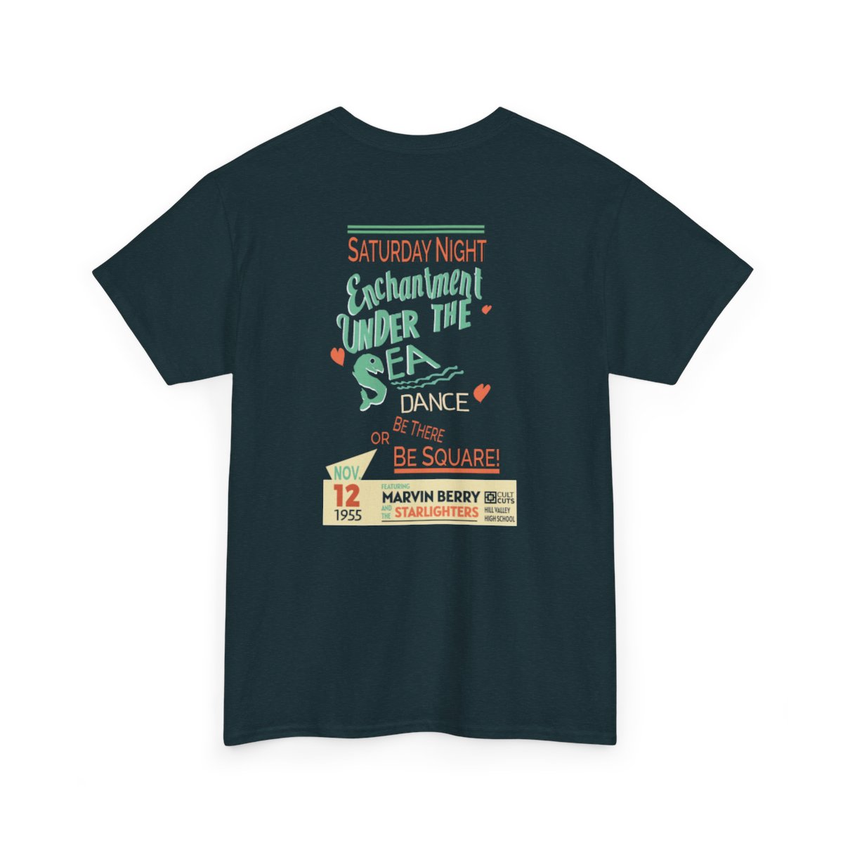 El Encanto revive la magia del legendario ‘Baile Encanto Bajo el Mar’, con el afiche original de Marvin Berry & The Starlighters estampado al frente. Una prenda pensada para fanáticos del cine y la música, hecha en algodón suave con corte cómodo y urbano. Más que un abrigo: un pedazo de historia pop que te lleva directo a 1955… con escala obligada en los ’80.