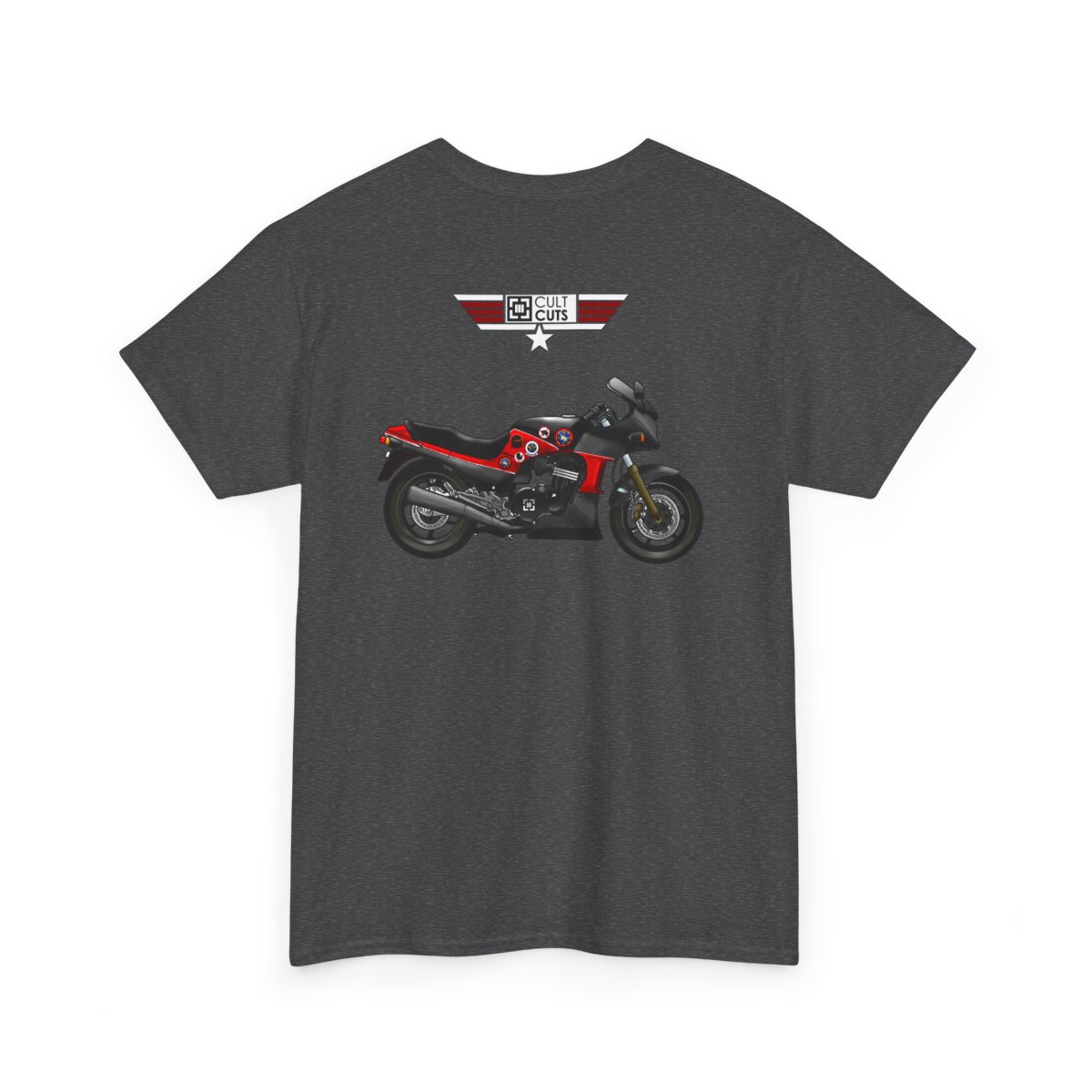 Top Gun en estado puro. La T-Shirt GPZ rinde homenaje a la Kawasaki GPZ900R de Pete ‘Maverick’ Mitchell, la moto que volaba por las pistas tanto como los F-14 en el aire en Top Gun. En la espalda, ilustración detallada con los stickers originales que hicieron de esa máquina un ícono de los ’80. Corte clásico, algodón de primera y toda la actitud de quien vive a velocidad crucero. Una pieza de culto para fanáticos del cine, las motos y la libertad sin límites.