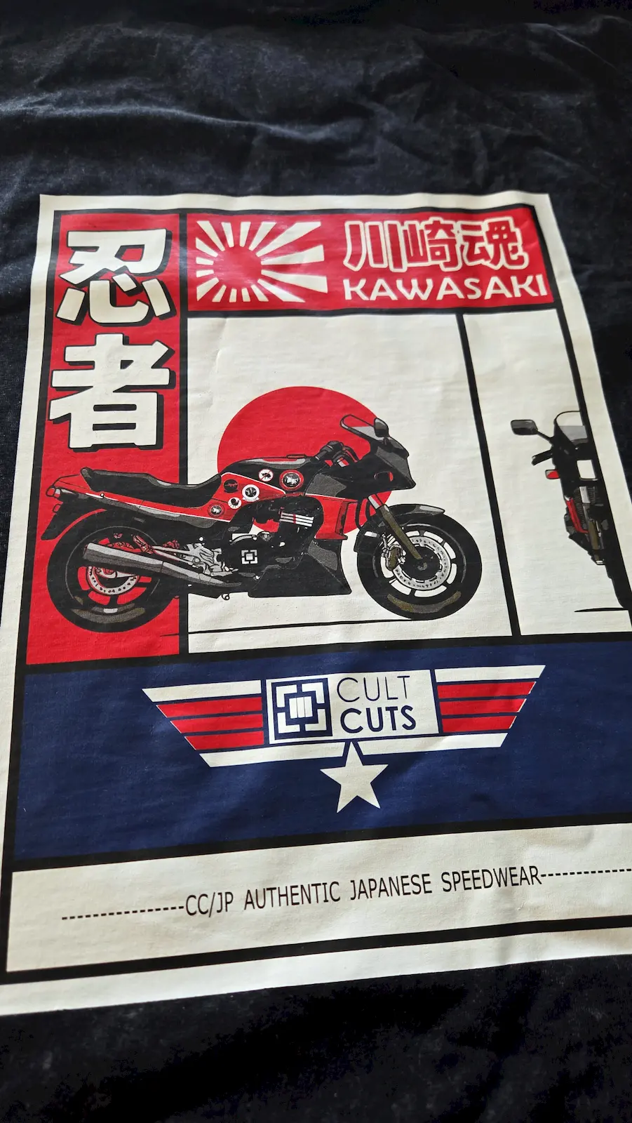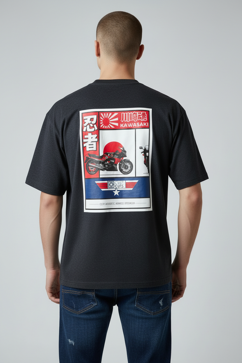 Top Gun en estado puro. La TShirt GPZ rinde homenaje a la Kawasaki GPZ900R de Pete ‘Maverick’ Mitchell, la moto que volaba por las pistas tanto como los F-14 en el aire . En la espalda, ilustración detallada con los stickers originales que hicieron de esa máquina un ícono de los ’80. Corte clásico, algodón de primera y toda la actitud de quien vive a velocidad crucero. Una pieza de culto para fanáticos del cine, las motos y la libertad sin límites.