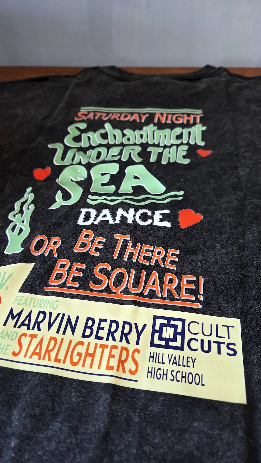 El Encanto revive la magia del legendario ‘Baile Encanto Bajo el Mar’, con el afiche original de Marvin Berry & The Starlighters estampado al frente. Una prenda pensada para fanáticos del cine y la música, hecha en algodón suave con corte cómodo y urbano. Más que un abrigo: un pedazo de historia pop que te lleva directo a 1955… con escala obligada en los ’80.