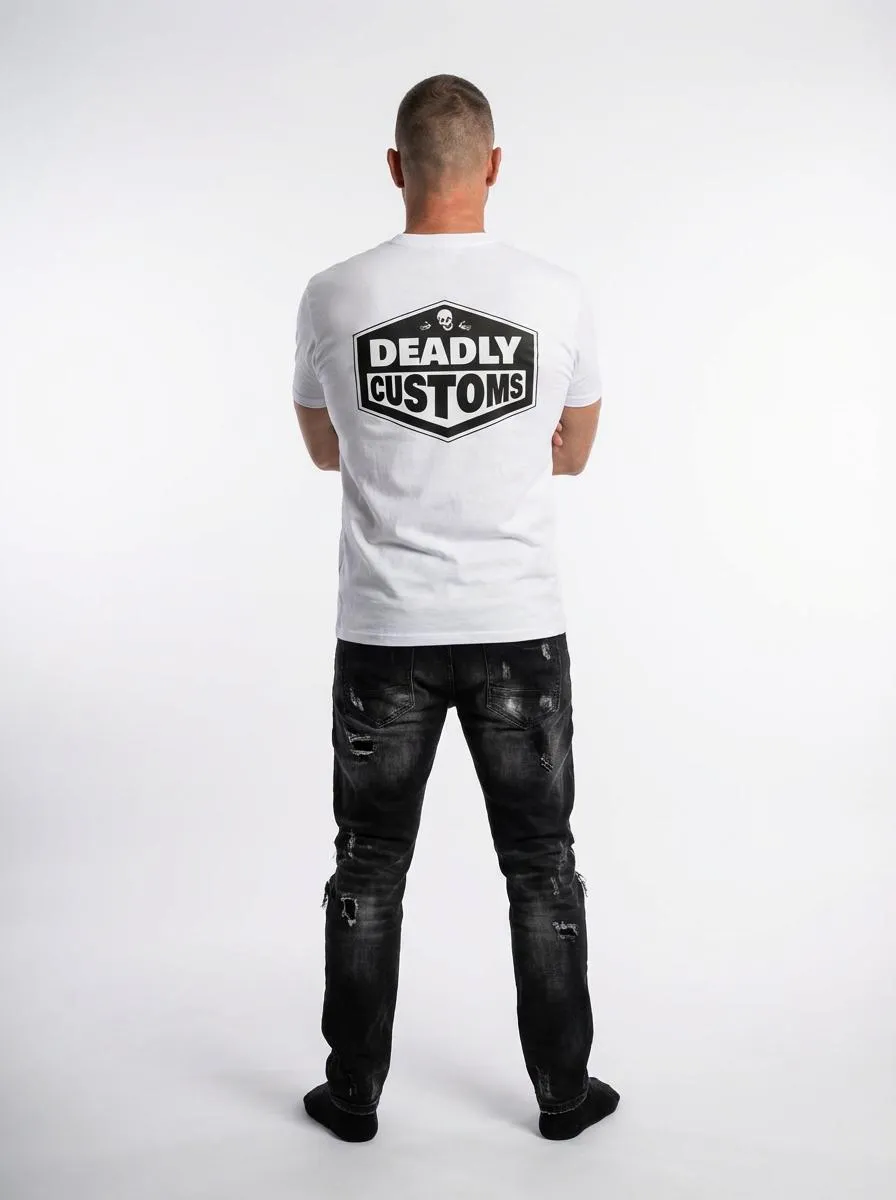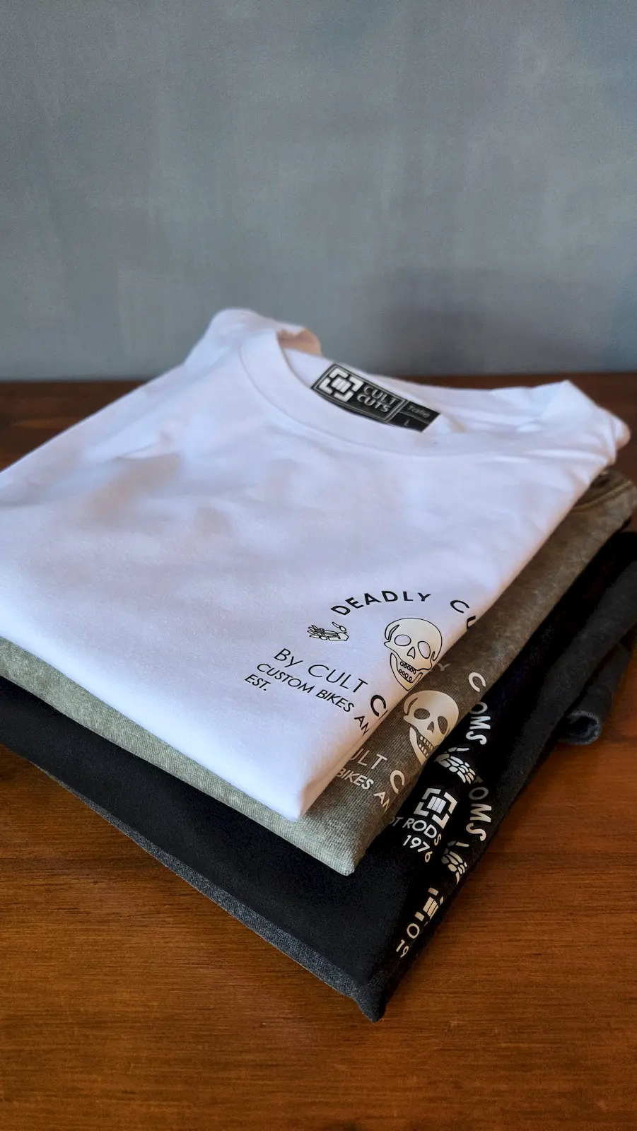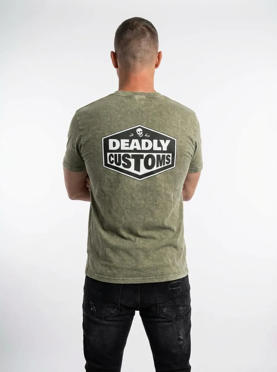 La TShirt Hex toma la esencia de los parches biker y la transforma en un emblema minimalista de la línea Deadly Customs. El hexágono sólido encierra un lettering contundente, mientras el pequeño cráneo con pistones cruzados sobrevuela el diseño como marca de hermandad. Disponible en negro, oliva y blanco, en algodón premium y corte clásico. Una pieza que funciona como estandarte de los que viven a puro motor, asfalto y lealtad a su crew.