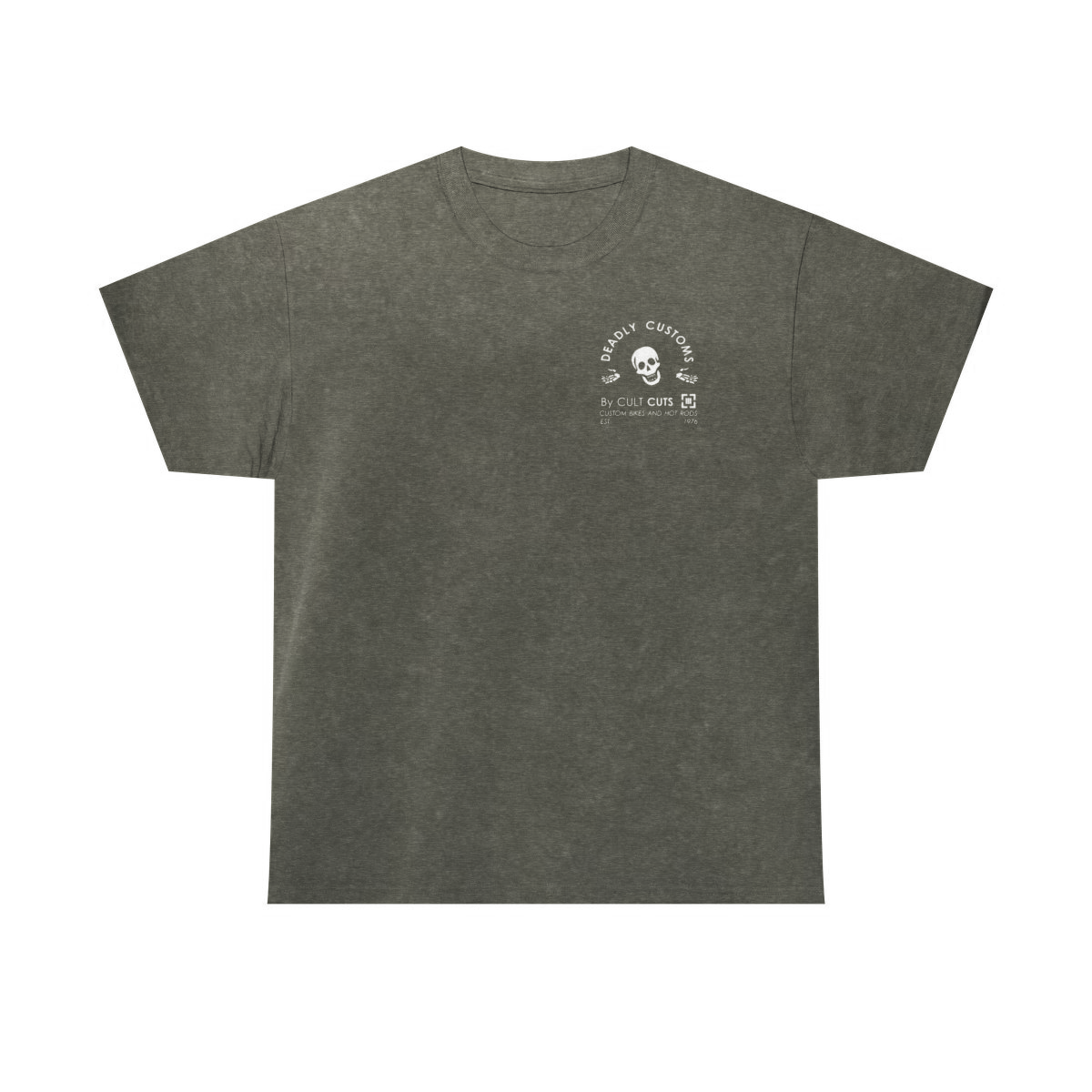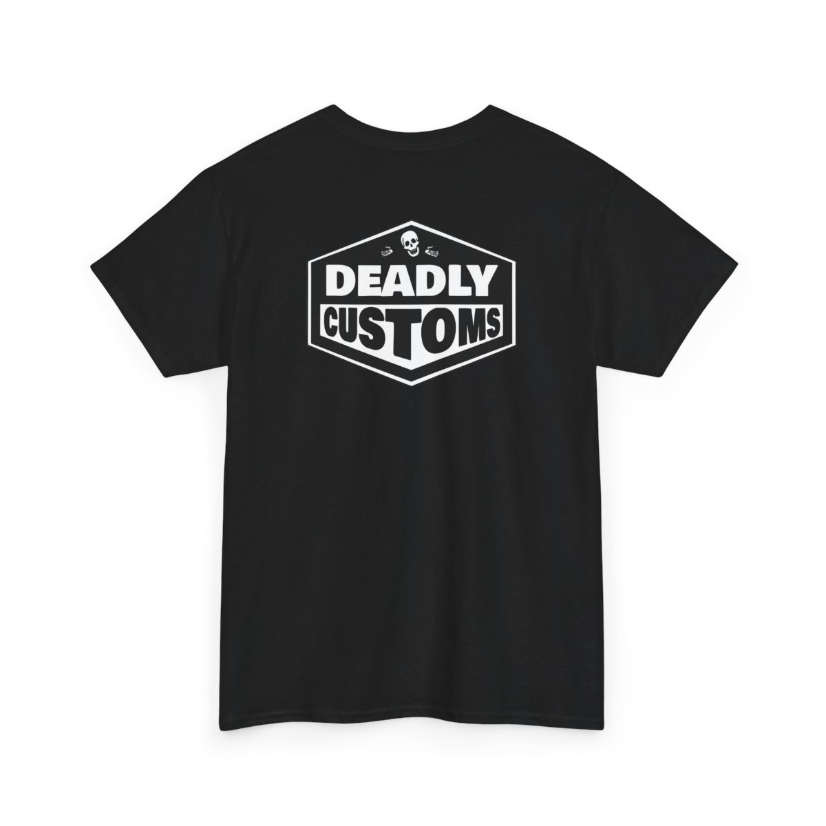 La T-Shirt Hex toma la esencia de los parches biker y la transforma en un emblema minimalista de la línea Deadly Customs. El hexágono sólido encierra un lettering contundente, mientras el pequeño cráneo con pistones cruzados sobrevuela el diseño como marca de hermandad. Disponible en negro, oliva y blanco, en algodón premium y corte clásico. Una pieza que funciona como estandarte de los que viven a puro motor, asfalto y lealtad a su crew.