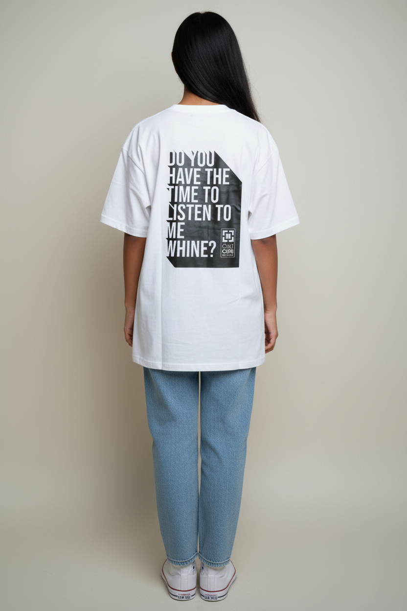 La TShirt Whine dispara directo al espíritu punk de los ’90. El texto en la espalda reproduce la primera línea de Basket Case, himno de Green Day y soundtrack eterno de una generación que convirtió la ansiedad y el humor ácido en arte. Diseño tipográfico contundente en negro sobre blanco, corte clásico y algodón suave. Una pieza para fans del rock alternativo que todavía sienten que Dookie nunca terminó.